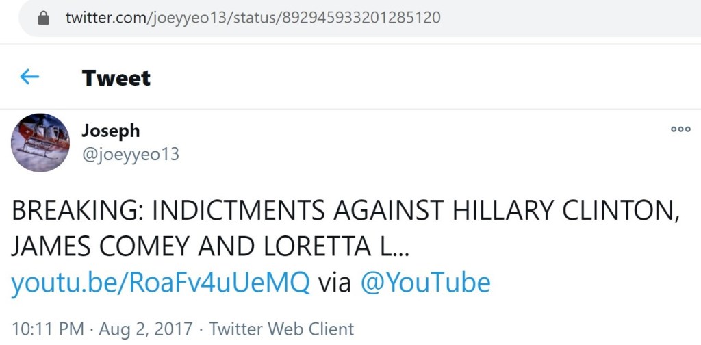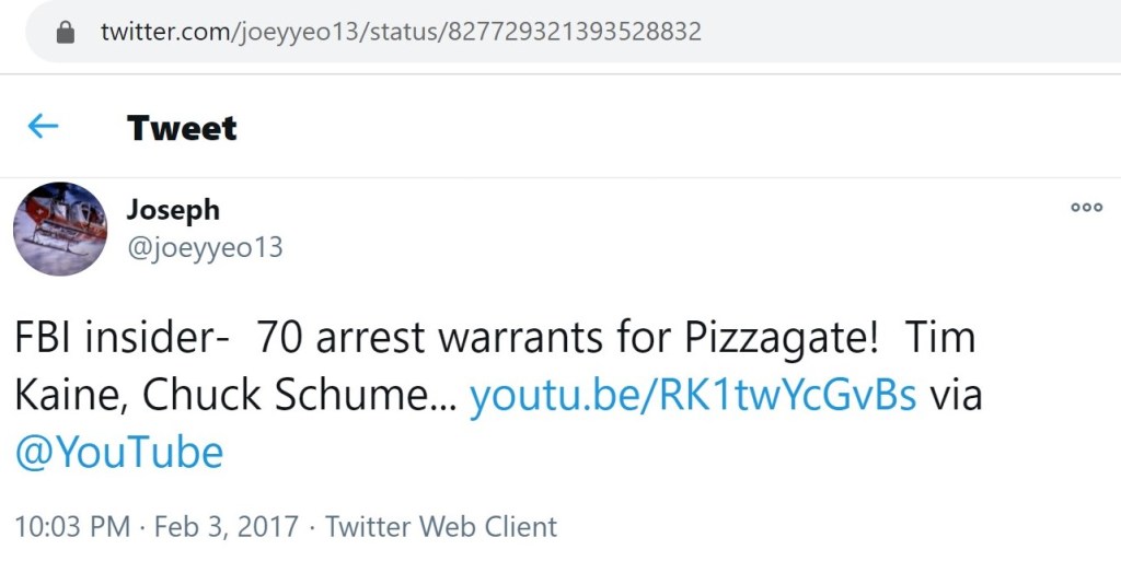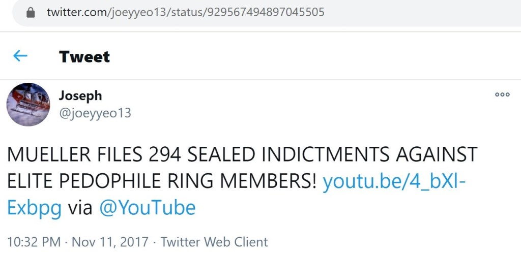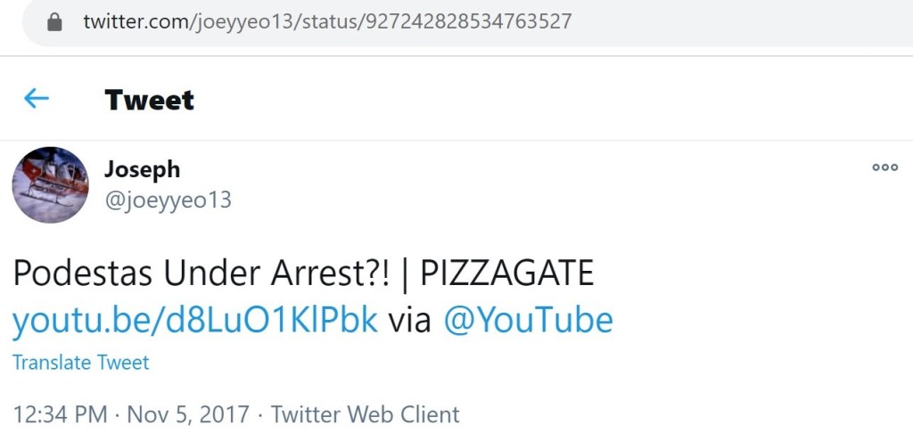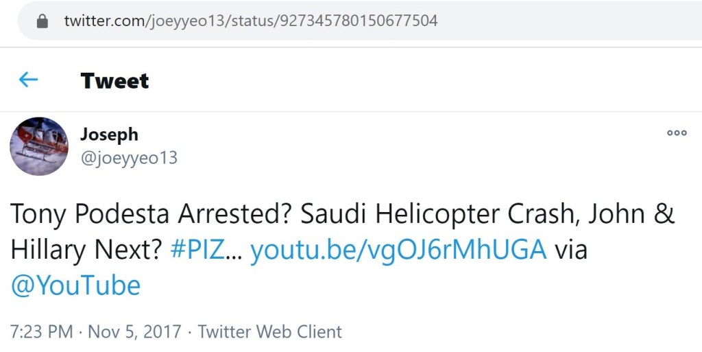 @joeyyeo13 also posted claims that would have validated Q’s prior ‘prediction’ about the arrest of the Podestas. However, those claims were completely false.