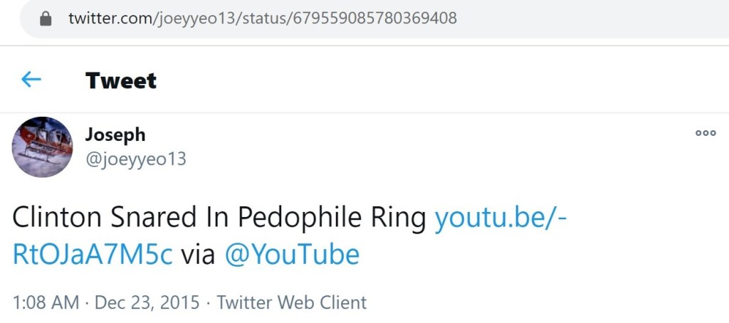 While I cannot be fully certain about whether the earlier tweet preceded #Pizzagate, I am certain that the following baseless ‘pedo’ smears came well before #Pizzagate.