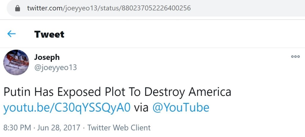 Over a period of nearly two years, I have studied the IRA trolls, QAnon, and other malign activity on social media. I have identified and documented over 700 online trolls which I assess with a high degree of confidence to be operating on behalf of the IRA. Some of those accounts I identified have since been suspended, but many are still present on Twitter and other platforms. My hope is that by reviewing the activity of one such account, readers will come away with a better understanding of this ongoing smear campaign. As we proceed, I’ll be adding my observations where I think it’s warranted.