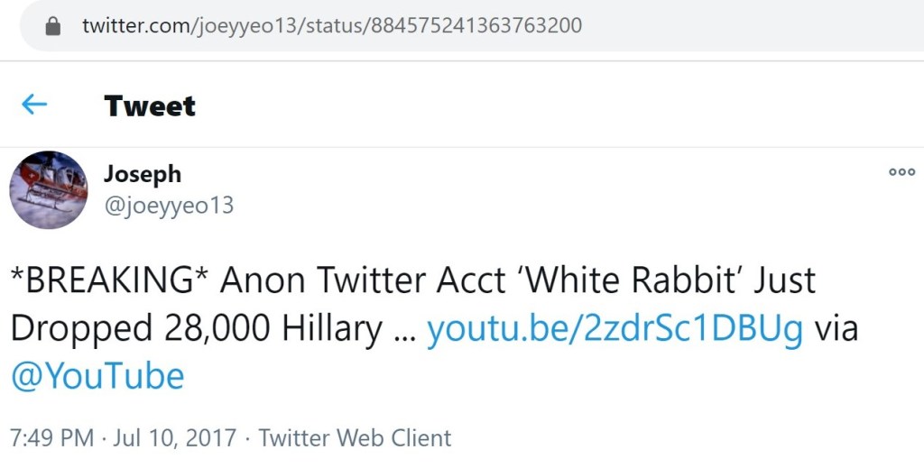 The road to QAnon was partly paved by certain other Anons and phony insiders. I covered some of those Anons and ‘insiders’ and their direct intersection with the Internet Research Agency in my earlier article. Three of them were a ‘FBI Anon’, a ‘Pentagon Insider’, and a ‘DC Insider’, who will appear again below. Five additional Anons will also appear, including a White Rabbit Anon.