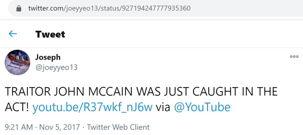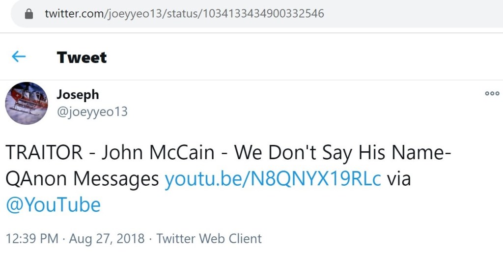 The phrases “Panic Mode” and “Red October” made several appearances in Q’s posts. A few days after the tweet about sealed indictments, Q would refer to sealed indictments in post #151. And, as covered in my earlier article, the IRA trolls and Q sought to smear Sen. John McCain in various ways, to include calling him a traitor.