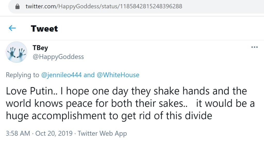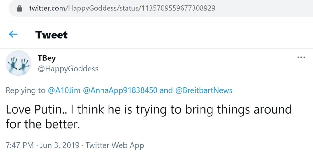 @HappyGoddess also promoted Putin, beyond what we reviewed earlier.