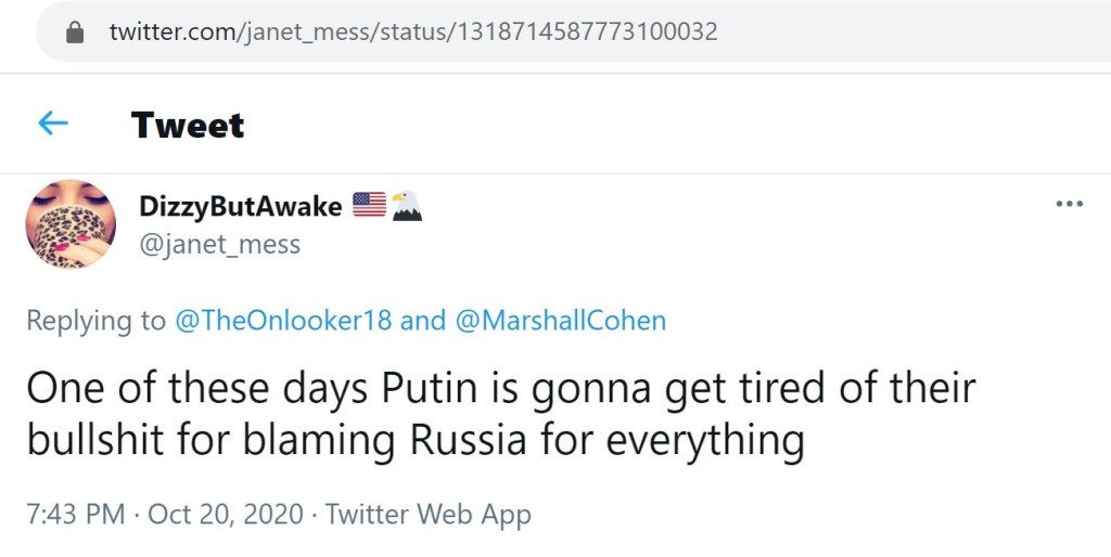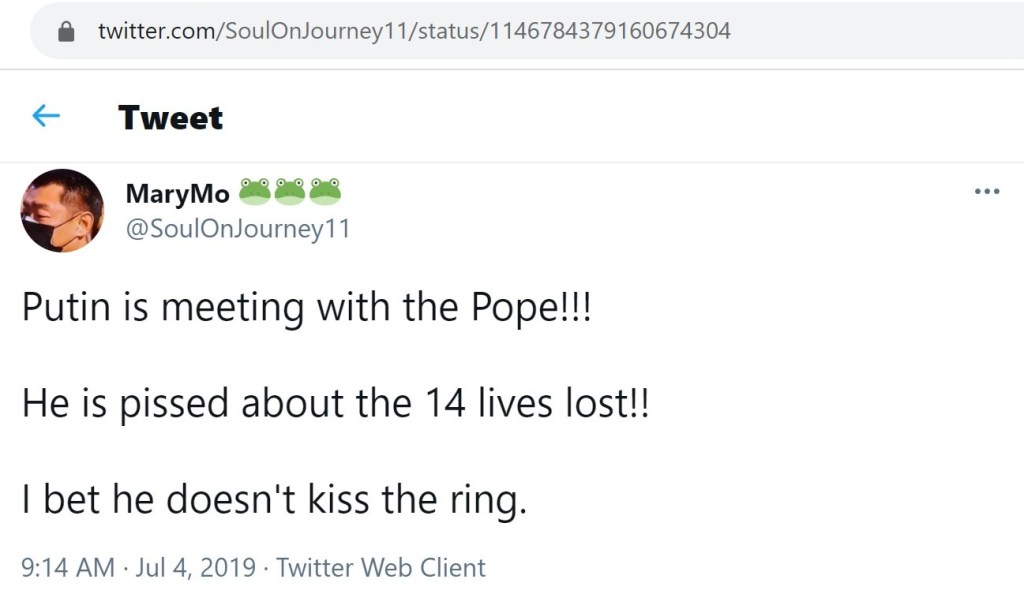 Like @joeyyeo13 and @HappyGoddess, this account used their platform to push pro-Putin content. Those who have read my other studies will find this content to be very familiar.