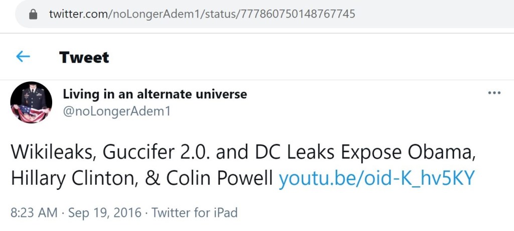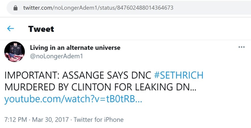 This user also pushed Guccifer 2.0 and DC Leaks and then spread false claims about Seth Rich.