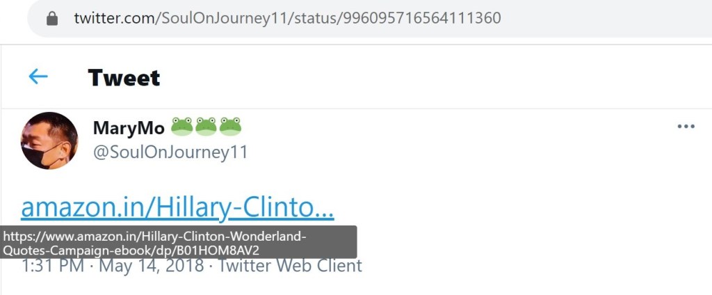 By now, you likely will not be surprised to learn that Hillary Clinton fans were not the ones linking to these eBooks on Twitter. None of the evidence I’ve found online substantiates that Hillary Clinton fans were involved in the creation or promotion of these eBooks, despite what the red herring on Amazon tried to suggest.