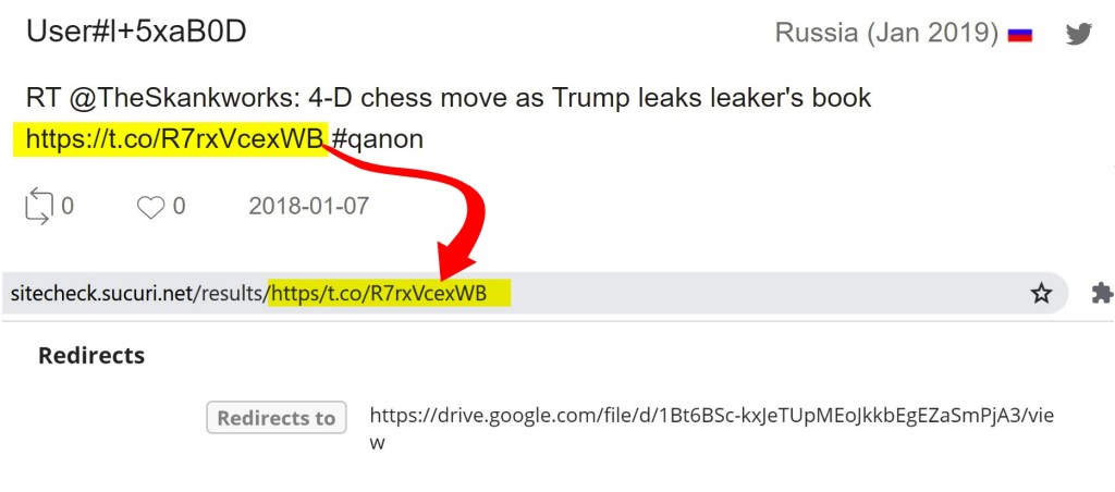 For comparative purposes, the URL from the aforementioned Wikileak’s Fire and Fury tweet is included directly above. The URL address in the Project Lakhta post and Wikileak’s post are identical.